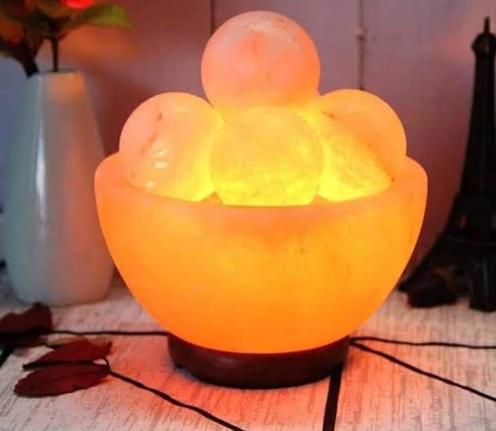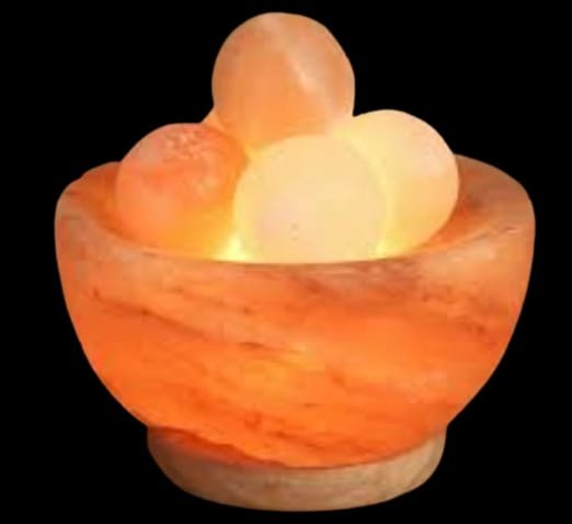 Pink Salt Bowl Lamp with Ball Shaped Small Rocks – Handcrafted Himalayan Salt Light for Relaxing Decor
